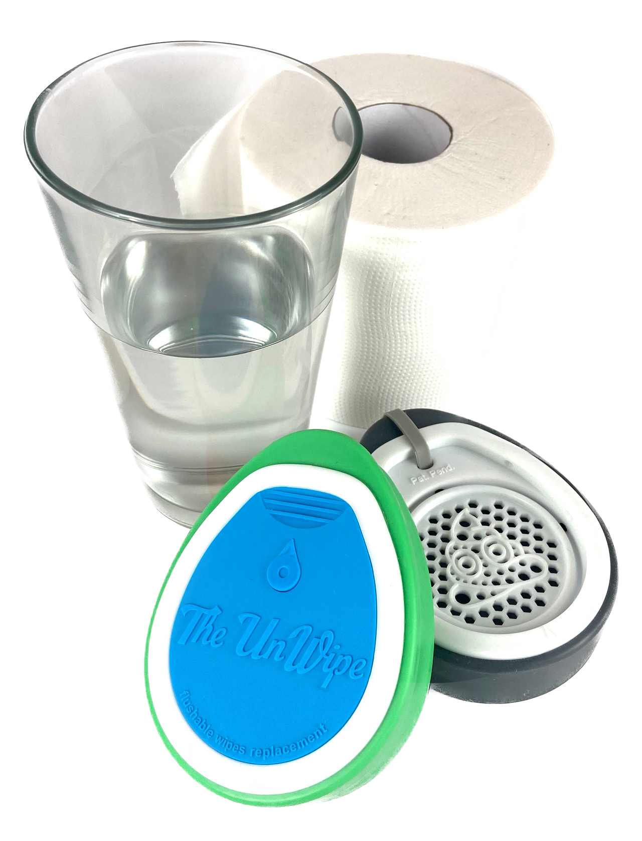 Upgrade your bathroom routine with The UnWipe™ brand wipes replacement - the only no-plastic solution to a cleaner, more sustainable butt. The UnWipe puts big, perfectly wet, kick-ass texture on your own toilet paper, instantly transforming it into a cleaning powerhouse. The texture is the difference, and no one else has it.Simply press any toilet paper into The UnWipe for ½ second, wipe, and flush! Upgrade from just dry toilet paper to instantly get a delightfully clean butt that will keep you feeling fresh & clean all day long.
