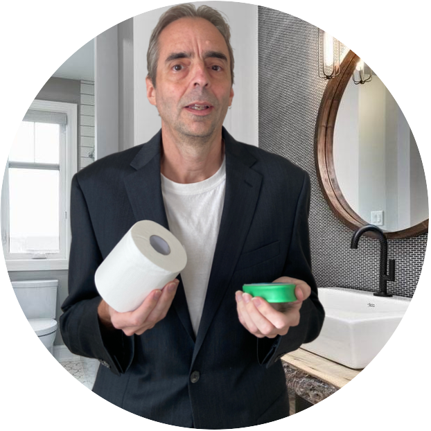 Good design makes life easier. My houses – profiled in HGTV, the Travel Channel, Fine Homebuilding, and more – use less energy, withstand natural disasters, and are visual sensations. My kitchen product – lovingly shown on ABC TV's The Chew by Michael Simon, and on The Rachael Ray Show by actor Anthony Anderson and Rachael herself – replaced tens of millions of feet of single-use plastic wrap. Now, with The UnWipe, we can stop 100 billion flushable wipes from damaging the environment. Better hygiene, money in your pocket, and a cleaner world. Let's wipe out waste and make asstounding puns!