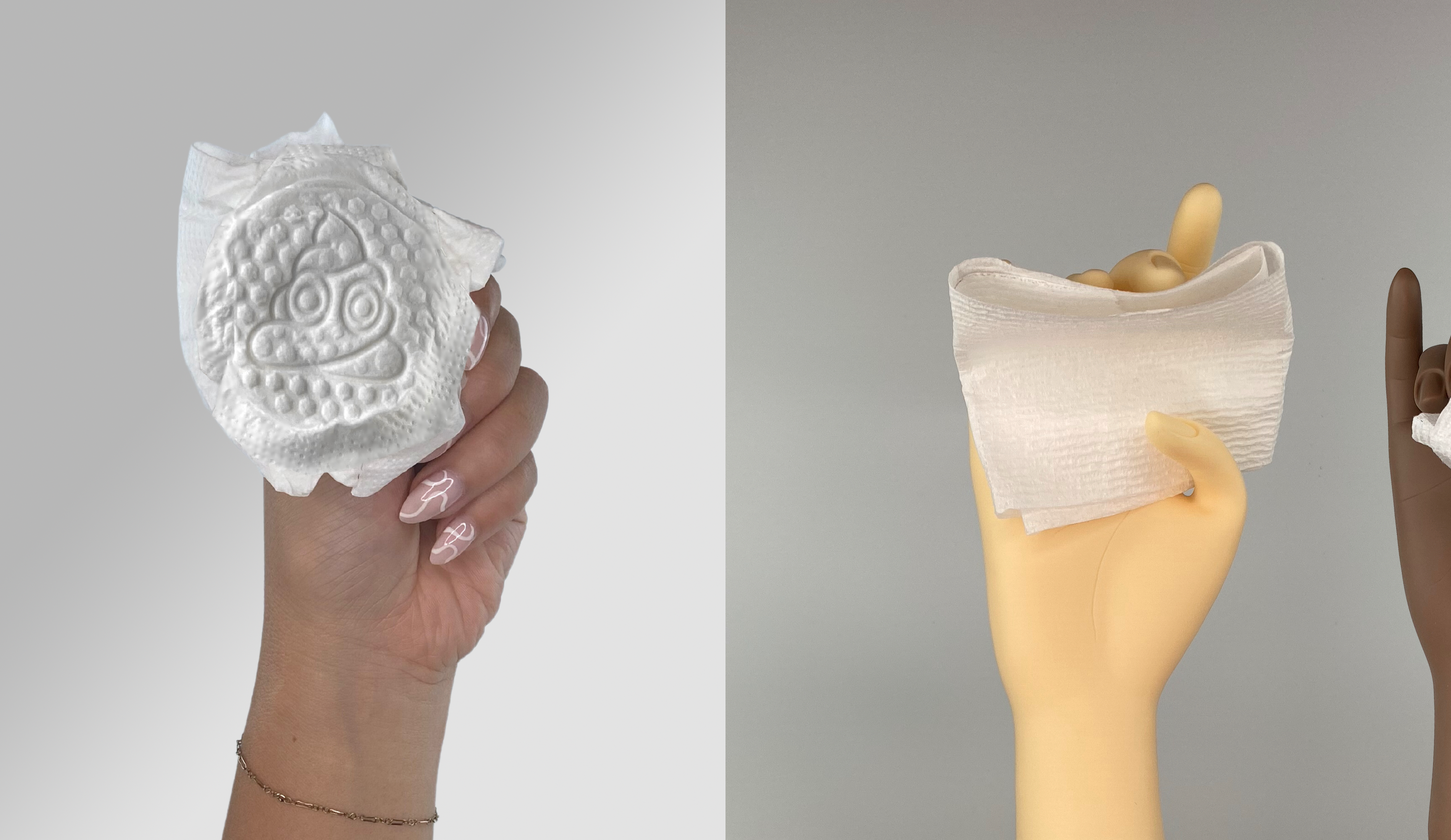 Compare that to your paper transformed by The UnWipe. It has badass texture to clean better and safely flushes without causing fatbergs. And The UnWipe is a one-time purchase versus having to buy wipes forever.