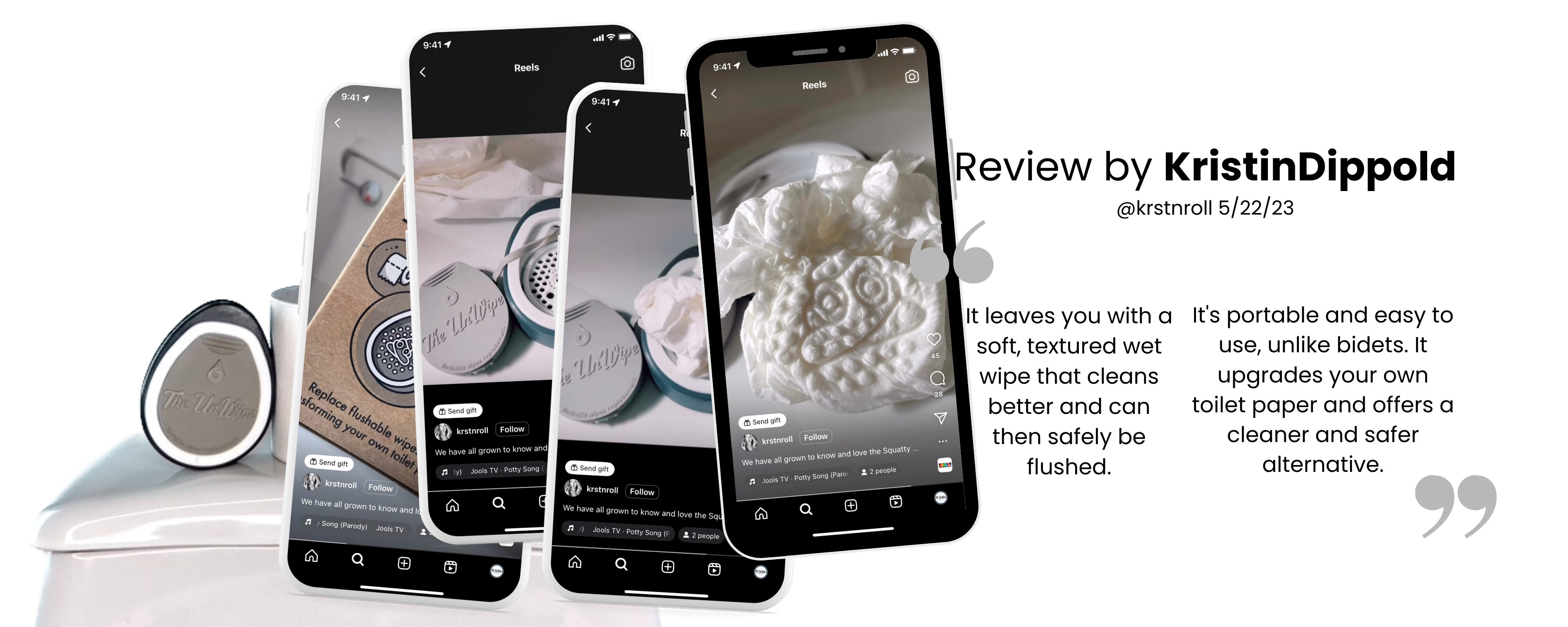 Your toilet paper – even the good stuff – doesn't clean completely. The UnWipe™ wipes replacement instantly upgrades your own toilet paper with strong, rich, perfectly wet texture to clean your butt better. The UnWipe cleans what toilet paper alone does not. Your...ummm...skin will feel the difference.