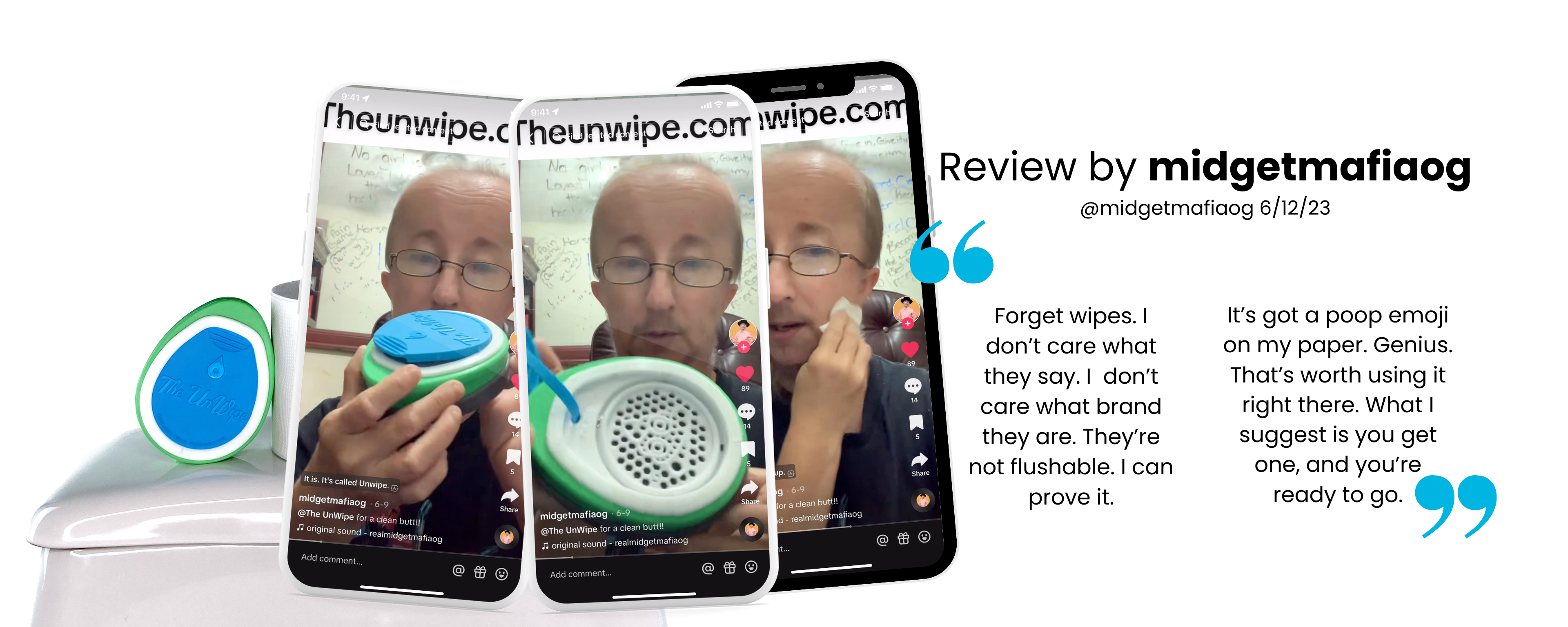 For these people – for you – The UnWipe instantly upgrades your own paper with strong, rich, perfectly wet texture to clean your butt completely – no one else does this – without the endless damage and cost of so-called ‘flushable’ wipes.